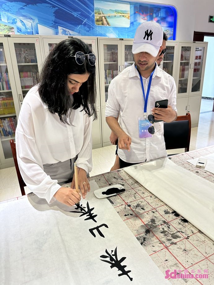 中国山东网-感知山东7月21日讯(记者 张敏敏 薛瑞 见习记者 张梦瑶 李居安)山水相依,浪漫徂徕。近日,“好客山东 好品山东”外国友人感知体验活动走进泰安徂汶景区,在汉博园参观了解汉代文化,学习中国古代毛笔字的书写方法。